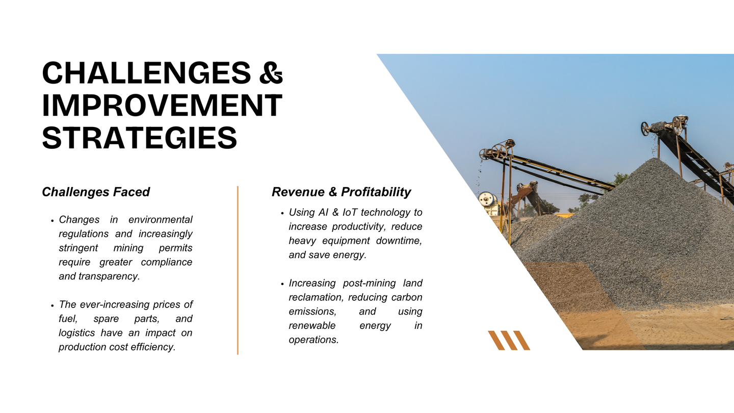We hereby state that the company owns quarries located in four different regions, reflecting the breadth of its operations and the diversity of its operational sites. The company also holds ten valid mining licenses issued by the relevant authorities, enabling it to conduct mining activities in accordance with approved laws and regulations, while ensuring full compliance with applicable regulatory requirements and standards.